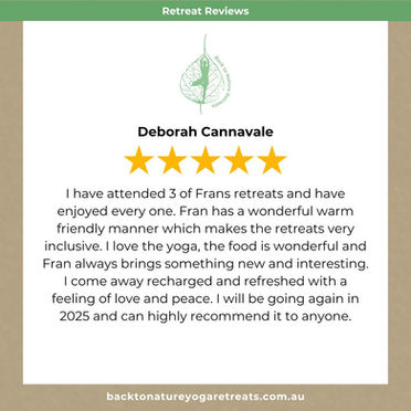 Francesca loves going on Yoga retreats and over the years has enjoyed many, both locally and over seas.